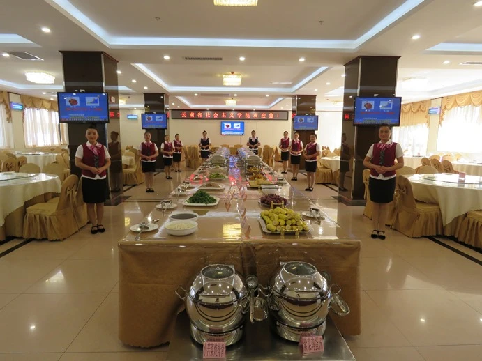 本站讯 云南省社会主义学院餐厅是为参加培训的学员提供餐饮服务的场所,也是展现学院后勤软件建设水平的重要窗口。自今年3月份学院装修重新投入使用以来,中心领导班子高度重视员工的岗位培训。餐饮部厅面在全部是新员工的特殊情况下,着重打牢员工的业务基础,强化员工的礼节礼貌、服务态度、技能技巧的培训基础上,加大培训服务员的实际操作流程,注重深入礼节礼貌的标准化,培养服务员的应变能力和工作效率的力度,在每天圆满的完成工作接待后都要认真总结和分析,不断总结提高,让就餐的客人满意而归,并受到就餐人员的充分肯定。同事们在工作中互敬互助,相互学习,快乐成长。全体餐饮部员工将再接再厉,按照“规范化、精细化、人性化”目标不懈努力。(教学服务中心周丽)
