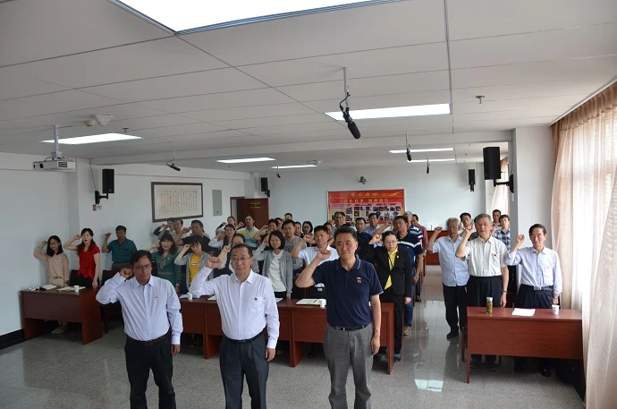 会议在庄严的中华人民共和国国歌声中拉开帷幕。赵明辉同志传达学习了《云南省社会主义学院机关党委关于开展共产党员“政治生日”活动的实施方案》,组织全体党员重温入党誓词。杨春禄同志宣读了《中共云南省社会主义学院党组关于表彰2017-2018年度先进基层党支部、优秀共产党员、优秀党务工作者的通知》,通报学院获得省直机关工委和省委统战部直属单位党委有关表彰情况,参会领导为受表彰的先进基层党支部和优秀个人颁发了荣誉证书。