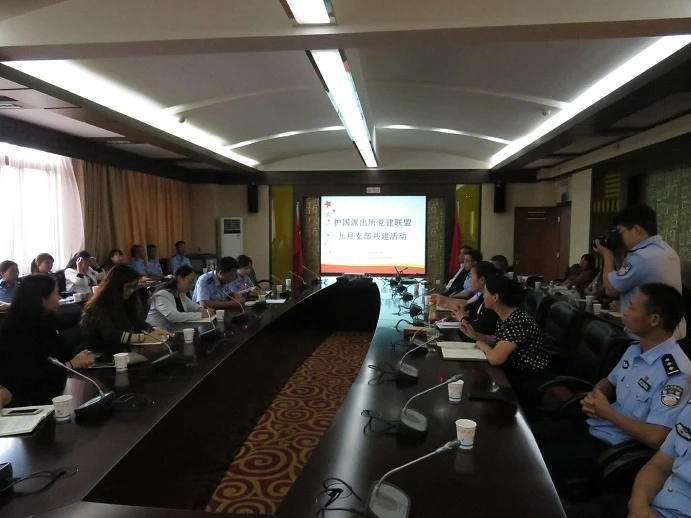 本站讯 9月19日下午,学院教学服务中心党支部与护国派出所党建联盟开展支部共建活动,活动以听党课、看图展、参观学习交流等方式进行,由学院教学服务中心党支部书记李志会主持。