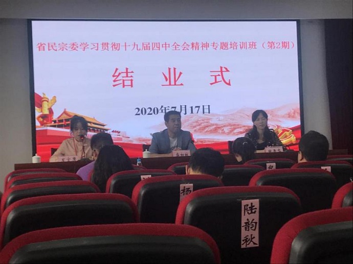 本站讯 7月14日至17日,省宗委学习贯彻十九届四中全会精神专题培训班(第2期)在省社院举办,深入学习党的十九届四中全会对民族宗教工作的部署要求以及习近平总书记考察云南重要讲话精神。来自机关和委属事业单位的76名干部职工参加培训。