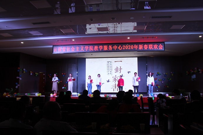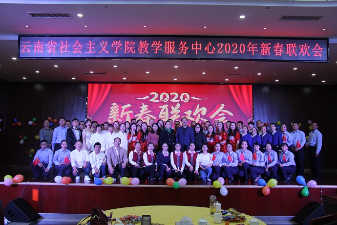 本站讯 1月17日下午,云南省社会主义学院教学服务中心在学院报告厅举行2020年迎新春联欢会。学院副院长陈友康、一级巡视员袁光兴,秘书长谢灿坤应邀出席联欢会,学院教职工和教学服务中心在职、退休员工共一百余人欢聚一堂,共迎新春,展望未来。