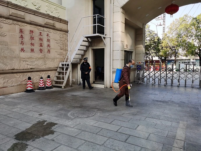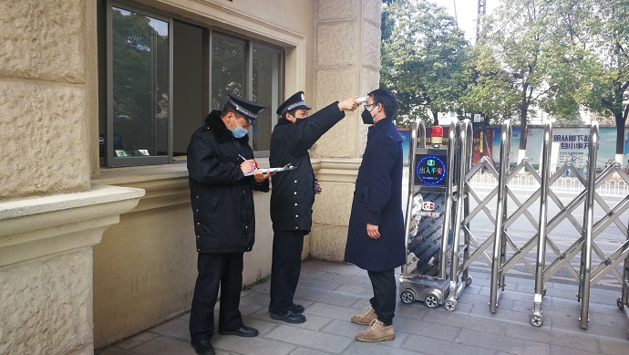 按照中央、省、市有关精神和要求,为切实加强疫情控处力度,确保各项工作平稳安全推进,在学院分管领导的安排指导下,1月26日起服务中心派出专人负责疫情防控各项工作落实,及时对值班人员进行了调整,对出入人员、后勤保障、疫情处置、疫情防控做了细致安排,严格执行公共区域消毒和工作人员戴口罩上岗,对进入学院人员进行体温检测,出入车辆加强询问管理。认真筛查员工情况,全面掌握员工身体状况,进一步加强对工作一线员工的关怀关注,对值班人员进行预防知识宣传和讲解,配备消毒用品和口罩,做好自我防护。发出通知倡议调休员工加强自我管理,主动学习疫情防控知识,要求做到不串门,不聚会,不信谣,不传谣,信官宣,提高个人健康意识和防护意识。