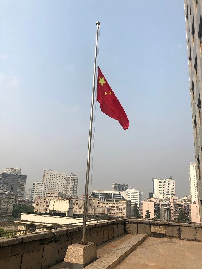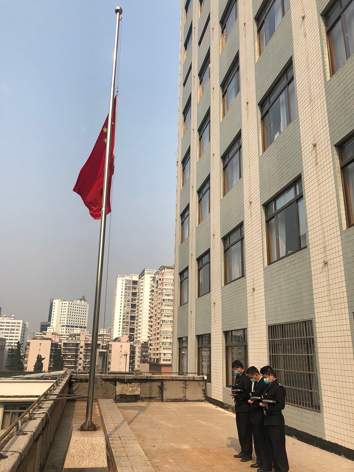 本站讯:为深切哀悼因抗击新型冠状病毒感染的肺炎疫情牺牲的烈士和逝世同胞,根据《国务院办公厅关于为新冠肺炎疫情牺牲烈士和逝世同胞举行全国性哀悼活动的通知》要求,云南省社会主义学院于2020年4月4日上午10:00时,在云南省社会主义学院教学综合楼四楼平台进行降半旗默哀3分钟仪式,致敬英烈、缅怀逝者,感谢他(她)们为国家和人民做出的牺牲和奉献。(教学服务中心 周丽)