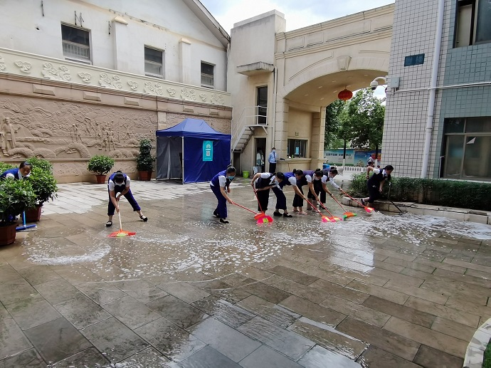 本站讯 为做好学院春季开学开班前疫情防控工作,确保学院开学后学员、教职工的健康与安全,营造卫生、干净、整洁、优美的校园环境,6月12—13日,教学服务中心开展学院开学前疫情防控措施大排查、环境卫生大扫除工作。