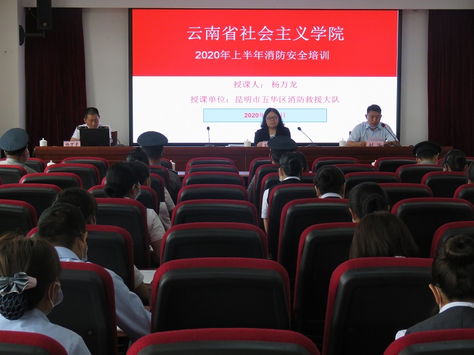 本站讯 为做好夏季学院教学综合楼消防安全工作,提高全院教职员工、临街各承租户防火安全意识,掌握防火基本知识,预防火灾事故的发生,确保教学综合楼、教职员工及各承租户的生命和财产安全,7月9日下午云南社院举行2020年上半年消防安全知识培训和火灾自救逃生疏散及灭火实战演练。学院全体教职员工、临街商铺承租户共100余人参加培训。受一级巡视员袁光兴委托,教学服务中心负责人代表学院领导在培训会上作动员。