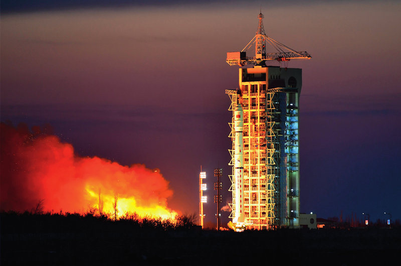 2021年12月10日8时11分,我国在酒泉卫星发射中心用长征四号乙运载火箭,成功将实践六号 05 组卫星发射升空。这次任务是长征系列运载火箭的第 400 次飞行 汪江波摄 / 本刊