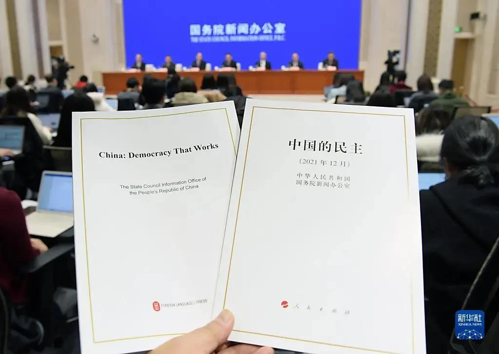 这是12月4日在发布会现场拍摄的《中国的民主》白皮书中、英文版?!⌒禄缂钦?李贺 摄