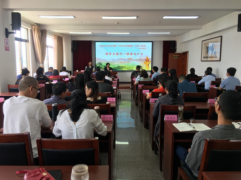 本站讯 7月12日下午,云南中华文化学院第44期中华文化讲座如期开展,云南广播电视台著名主持人、播音员刘伟以《领导力提升——演讲与口才》为题作专题讲座,文化交流处处长诸芳主持,2021年全省党外中青年干部培训班全体学员参加。