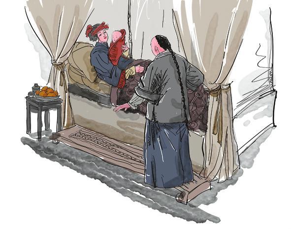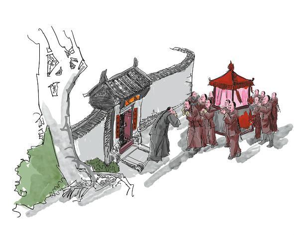 彭寿山由儿子彭润之、女儿彭寂宽陪伴,登门拜谢聂大夫。在聂鸿仪的药铺门前,彭家人向救命恩人聂大夫鞠躬作揖行礼。彭寿山得知聂鸿仪中年丧偶,便有心将女儿许配给他。彭寿山:“我有心将小女许配给你?!蹦艉枰牵骸拔液蔚潞文?,中年得此佳偶!”彭寂宽一旁听到父亲的话,低头垂手而立。聂鸿仪托媒人到彭家提亲,不久,便用花轿将彭家女儿吹吹打打迎娶到聂家来。