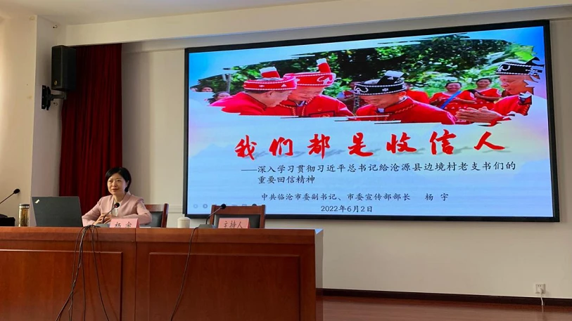 本站讯2022年6月2日下午,中共临沧市委副书记、市委宣传部部长、市委党校校长、市社会主义学院院长杨宇应云南省社会主义学院邀请,为2022年全省党外中青年干部培训班作题为“我们都是收信人——深入学习贯彻习近平总书记给沧源县边境村老支书们的重要回信精神”的专题讲座。