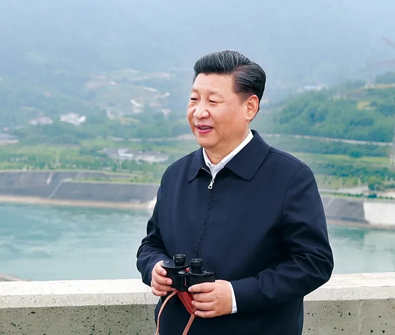 2018年4月26日下午,中共中央总书记、国家主席、中央军委主席习近平在武汉主持召开深入推动长江经济带发展座谈会并发表重要讲话。这是座谈会前,习近平于24日下午在三峡大坝坝顶察看三峡工程和坝区周边生态环境。新华社记者 谢环驰/摄