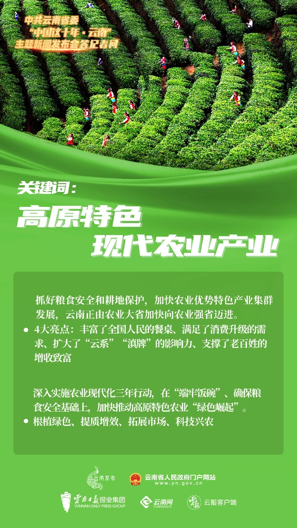 下一步,我们将深入实施农业现代化三年行动,在“端牢饭碗”、确保粮食安全基础上,加快推动高原特色农业“绿色崛起”。