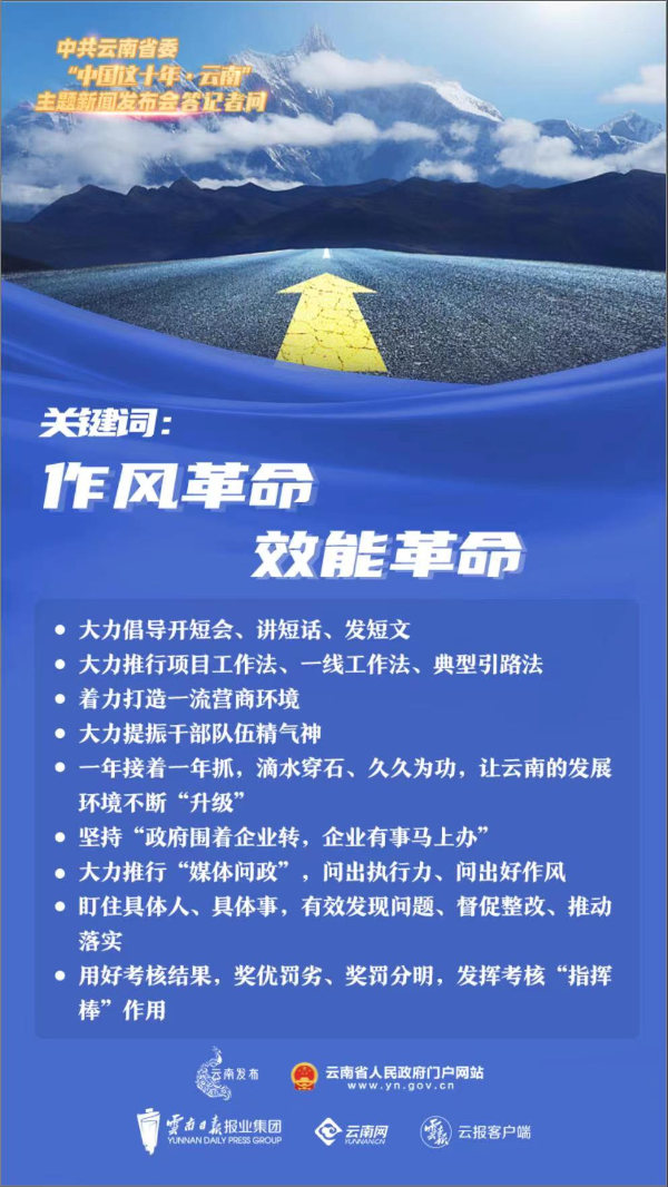新华社记者提问:云南省鲜明提出大力推进作风革命、效能革命,是出于什么样的考虑,有些什么具体措施?后续还将如何通过“转作风 促落实”凝聚发展合力,推动发展环境再“升级”?