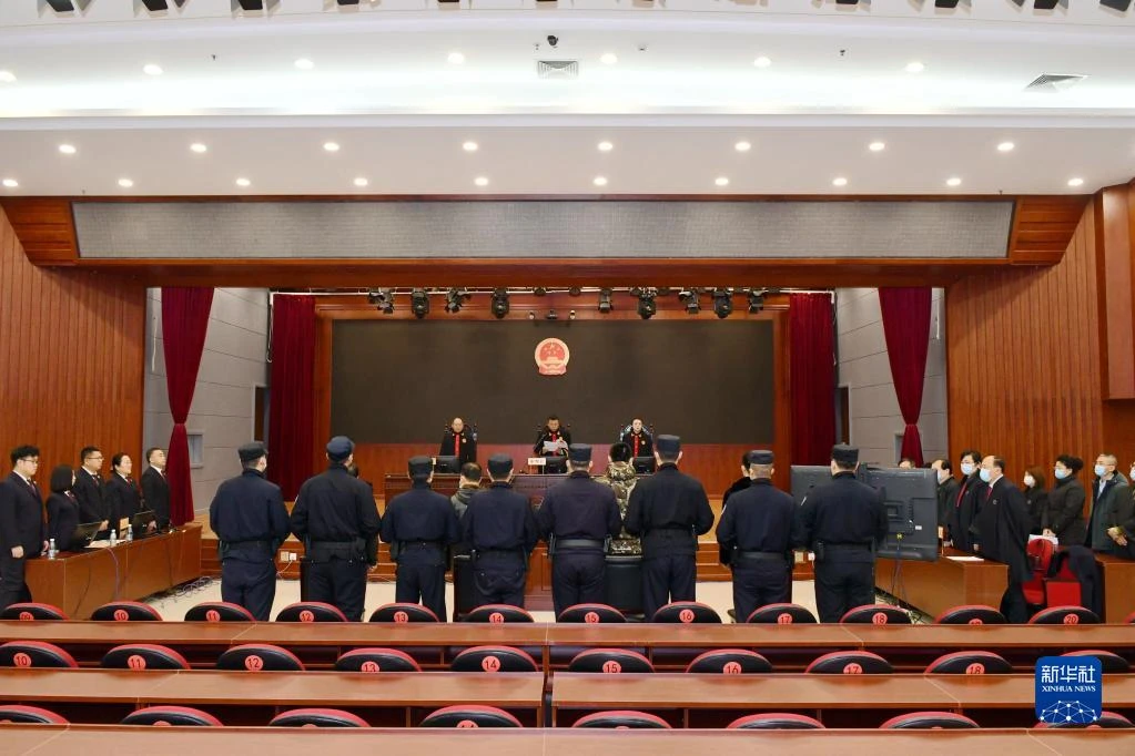 2020年11月20日,黑龙江省22家法院对38件黑恶势力和“?;ど 卑讣行?。这是在黑龙江省牡丹江市中级人民法院拍摄的宣判现场。新华社发