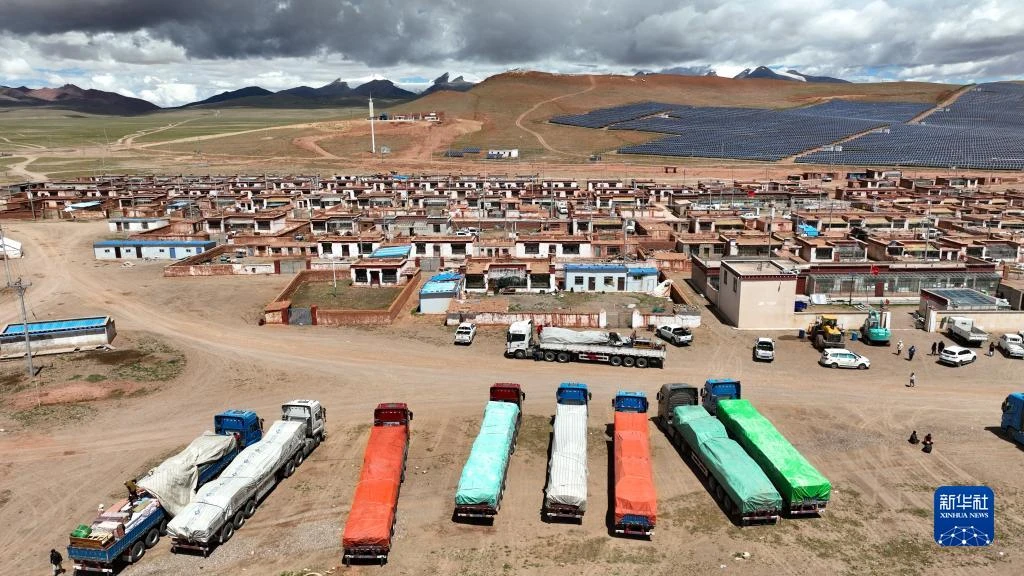 7月中旬,位于藏北那曲市双湖县多玛乡的仲鲁玛村一派热闹景象。一辆辆大货车陆续开进村庄,人们收拾行囊、搬运家具,驶向约700公里外的新家园:山南市贡嘎县森布日村。