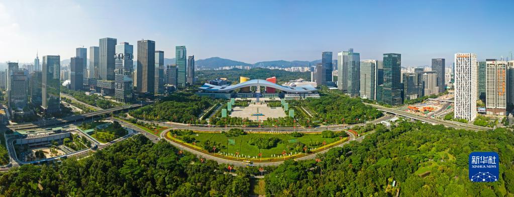 这是深圳市民中心和莲花山公园一线(2020年10月2日摄,无人机照片)。新华社记者 梁旭 摄