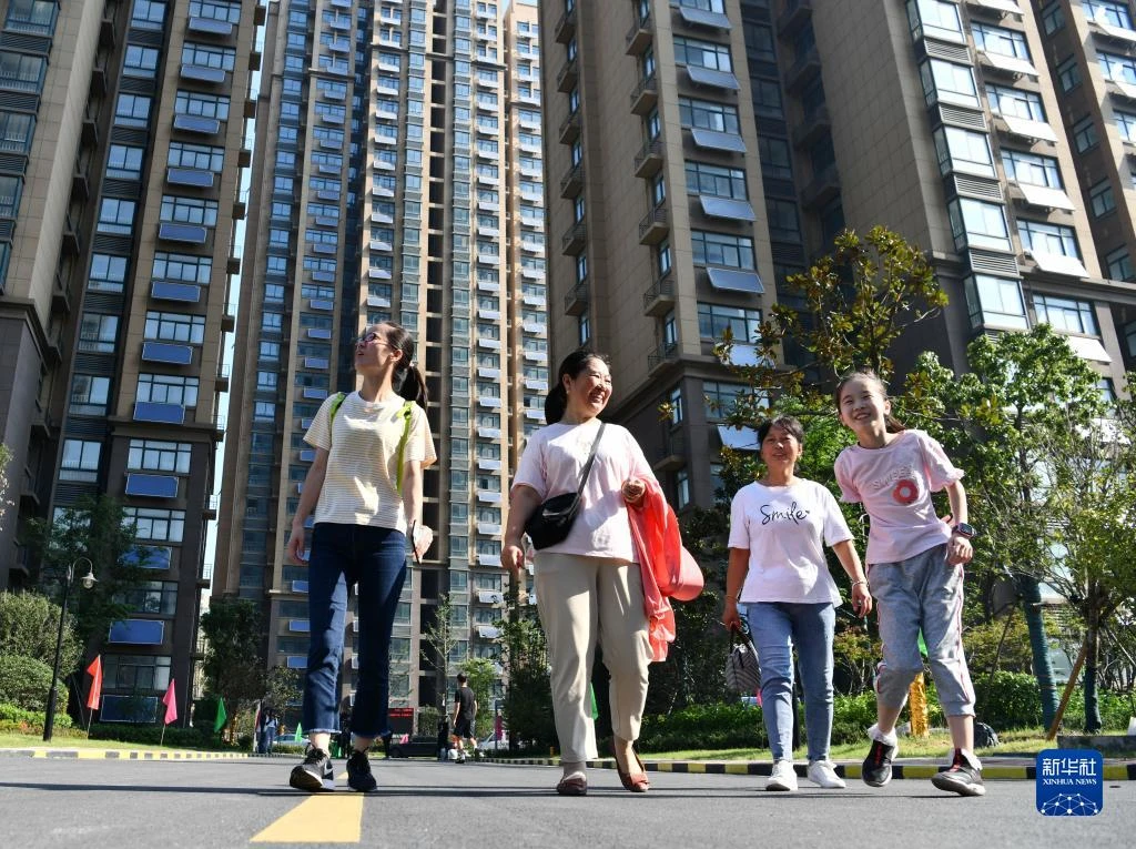 安徽省合肥市包河区同安街道甘棠苑小区回迁居民在小区内散步(2020年9月5日摄)。新华社记者 刘军喜 摄