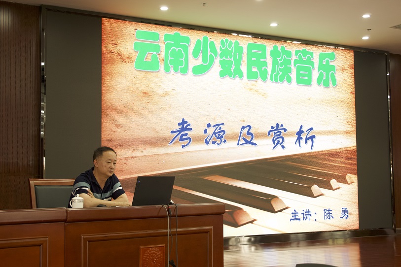 本站讯 2022年7月13日下午,应云南中华文化学院邀请,云南省音乐家协会主席、著名作曲家、云南师范大学原副校长陈勇教授为2022年全省党外中青年干部培训班作题为《云南少数民族音乐:考源及赏析》的专题讲座,展现了云南少数民族音乐的异彩纷呈,为学员们带来了一场独特的音乐盛宴。