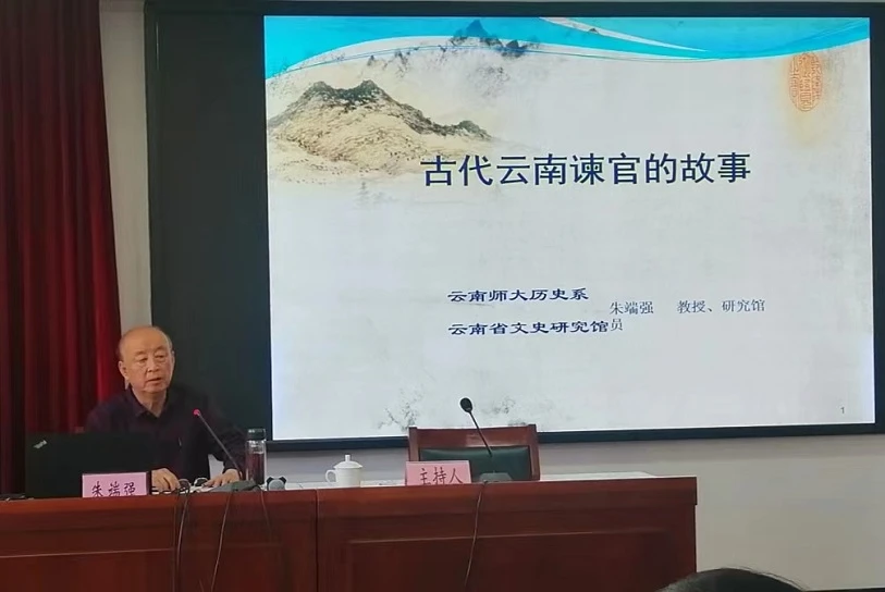 本站讯 近日,云南省文史研究馆馆员、原云南师范大学历史系教授朱端强为2022年全省党外中青年干部培训班作了题为《古代云南谏官的故事》的中华文化讲座。该讲座为云南中华文化学院2022年第4期,总第50期。