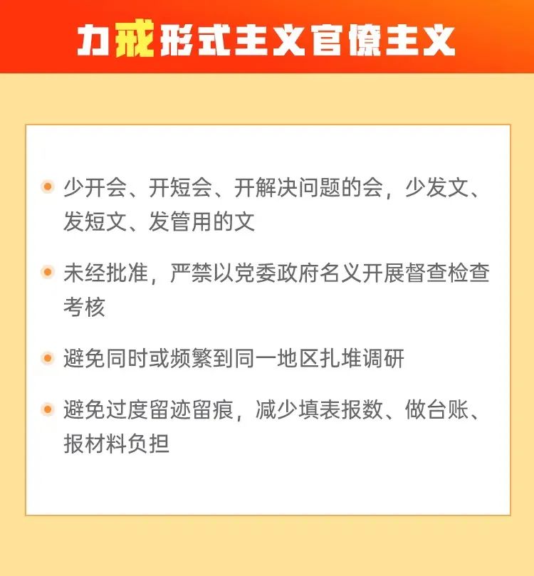 在服务基层方面,《规定》要求力戒形式主义、官僚主义,坚持开短会讲短话发短文,在规范简报、统筹规范督查检查考评、加强调研统筹规范、避免过度留迹留痕等方面作出具体规定,全力为基层干部松绑减负,把基层干部从“文山会海”中解放出来,用更多的时间精力抓工作落实。