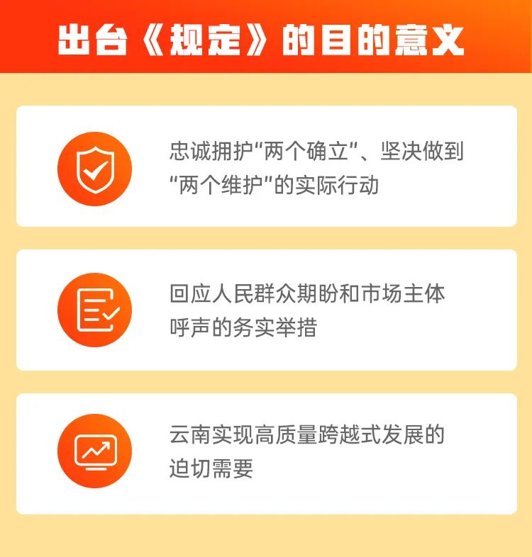 第二,这是回应人民群众期盼和市场主体呼声的务实举措。人民对美好生活的向往就是我们的奋斗目标。认真落实党中央各项惠民政策,切实解决好群众“急难愁盼”的问题,做到为人民服务、让人民满意、对人民负责,是我们一切工作的出发点和落脚点。作风革命、效能革命就是要大力弘扬“马上就办、真抓实干”的精神,多想干得成事的办法、不找干不成事的理由,把基层群众的操心事、烦心事、揪心事和市场主体的痛点、难点、堵点问题,作为各级政府千方百计推进解决的大事、要事、急事,要把群众和企业家放在心上而不是挂在嘴上,以体贴增加温度、用感情产生动力,带着做好事的热心、办实事的诚心、解难事的决心,做到“民有所呼,我有所闻;民有所呼,我有所为”,吸引更多企业到云南投资发展。