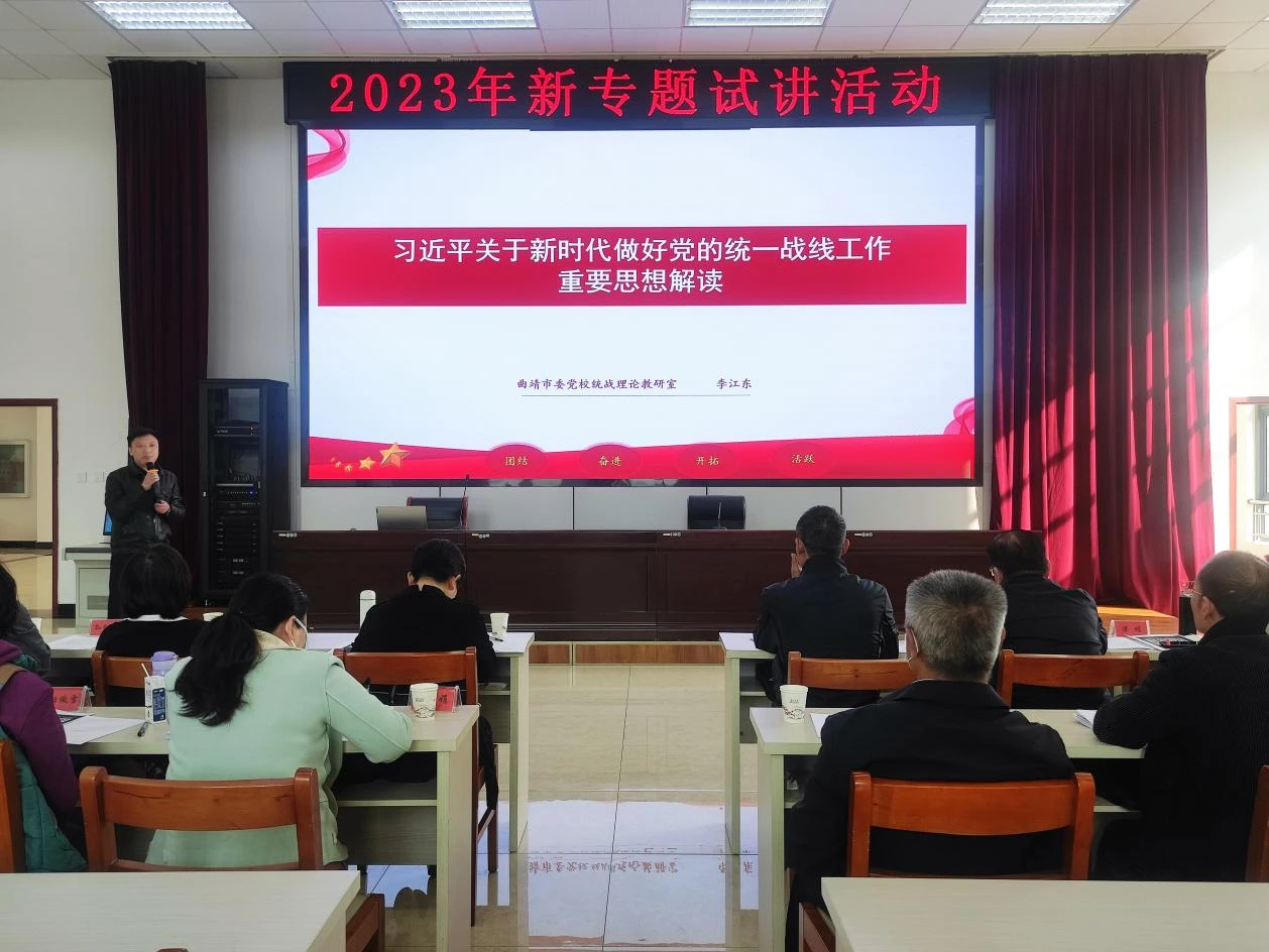 为更好地发挥学科优势、人才优势和阵地优势,曲靖市社会主义学院专门组建了铸牢中华民族共同体意识精品课程开发团队,开发团队以“学习贯彻习近平总书记关于加强和改进民族工作的重要思想”为主题,梳理了“铸牢中华民族共同体意识”理论脉络,重点围绕统一战线和共识教育,打造铸牢中华民族共同体意识特色学科,完善课程体系建设,构建了“核心课+主干课+拓展课”的课程体系。融合理论教学、主题教育基地、现场教学点,推出“三段式”教学,加强铸牢中华民族共同体意识教育,第一段为“课堂讲授,提升理论”,第二段为“主题参观,学思践悟”,第三段为“现场教学,曲靖实践”。