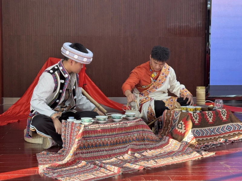 由云南省农业职业技术学院学生表演的“铸牢中华民族共同体意识——民族茶宴石榴红”活动让考察团成员们感受到云南茶文化的魅力。时光远摄