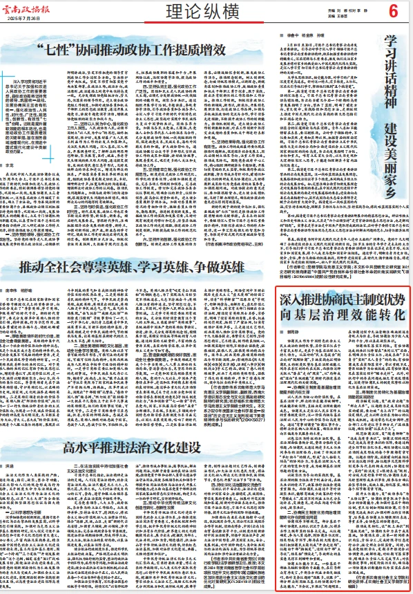 协商民主作为中国特色社会主义民主政治的独特优势,其价值不仅在于丰富民主形式,更在于为基层治理注入持久动力。从温岭的“民主恳谈会”到云南的“院坝协商”,多地实践也证明协商民主的制度优势与基层治理效能之间存在着深刻的内在关联,而推动这种关联从“潜在”走向“现实”、从“局部成效”迈向“系统效能”是新时代推进基层治理现代化的关键课题。