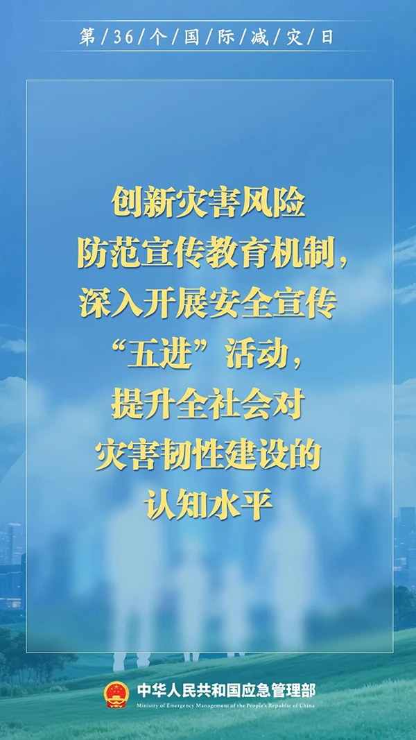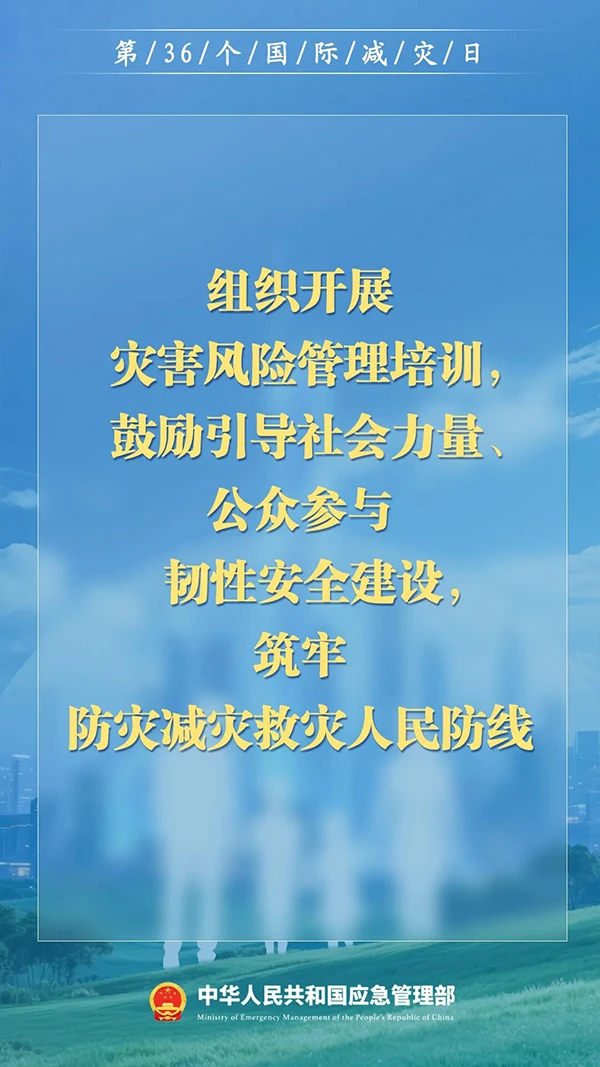 2025年10月13日是第36个国际减灾日,主题是“投资韧性建设,提升防灾减灾能力”。9月29日,国家防灾减灾救灾委员会办公室印发通知,部署做好2025年国际减灾日有关工作。