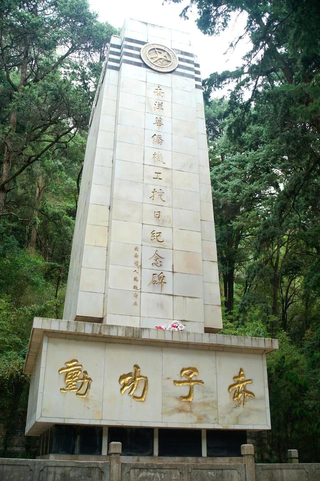 昆明西山南侨机工抗日纪念碑位于云南省昆明市西山公园内,由云南省人民政府于1989年设立,于2001年被中国侨联列为爱国主义教育基地。底座刻有“赤子功勋”四个字。另有南洋华侨机工抗日事迹陈列室。在抗日战争中,来自马来西亚、新加坡等地的3200多名华侨青年机工,组成“南洋华侨机工回国抗战服务团”回国支援抗战,在滇缅公路上抢运军需、维护车辆,有力地支援了抗战,1000余名侨胞为了祖国的抗战事业献出了年轻的生命。