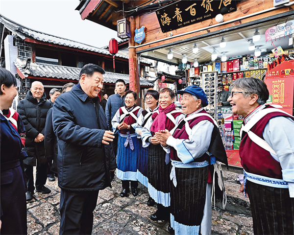 2025年3月19日至20日,中共中央总书记、国家主席、中央军委主席习近平在云南考察。这是19日下午,习近平在丽江古城考察时,与当地居民亲切交流。记者 燕雁/摄