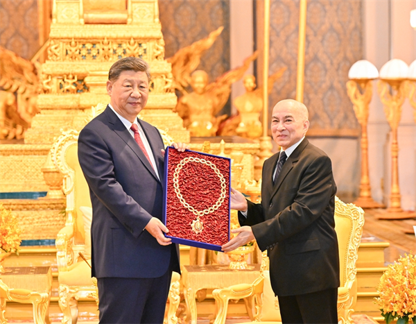 习近平表示,这枚勋章充分体现了柬埔寨对发展中柬关系的高度重视,承载着柬埔寨人民对中国人民的深情厚谊。这份荣誉不仅属于我个人,也属于所有为中柬友谊耕耘付出的友好人士。