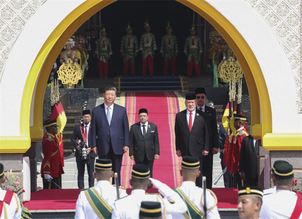 依山而建的国家王宫,棕榈挺拔。习近平主席同易卜拉欣最高元首登高望远,并肩站在王宫广场检阅台上。金色的王宫穹顶、威严的皇家仪仗队,与迎面而来的吉隆坡现代气象交融在一起。易卜拉欣最高元首说,习近平主席对马来西亚的国事访问是马中关系中的一件大事,充分显示出两国关系的高水平。
