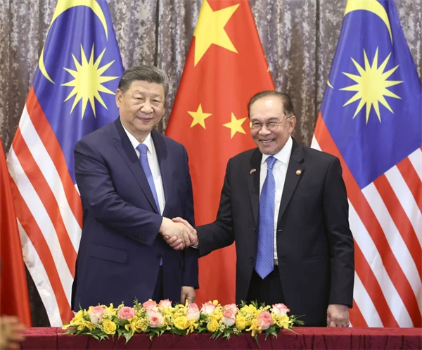 马来西亚,今年东盟轮值主席国和中国-东盟关系协调国。习近平主席对安瓦尔总理讲的这段话有着超越双边的重要意义:“中方支持马来西亚发挥东盟轮值主席国作用,愿同地区国家一道,尽早签署中国-东盟自由贸易区升级议定书,以开放包容、团结合作抵制‘脱钩断链’、‘小院高墙’和滥征关税,以和平、合作、开放、包容的亚洲价值观回应弱肉强食的丛林法则,以亚洲的稳定性和确定性应对世界的不稳定和不确定。”