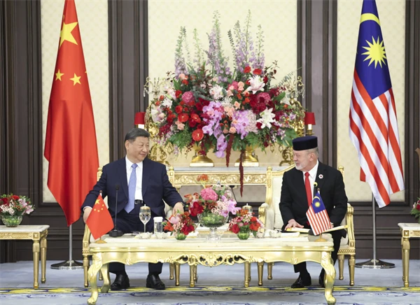 马来西亚国家王宫会见厅,习近平主席同易卜拉欣最高元首不约而同谈到了“人民”。中马联合声明里写下了这样一句话:“双方都秉持以人民为中心的发展理念,将扩大减贫扶贫、农业和乡村振兴等合作。”
