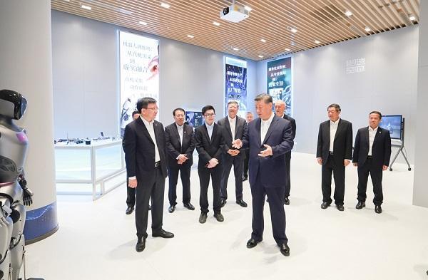 29日上午,习近平在中共中央政治局委员、上海市委书记陈吉宁和市长龚正陪同下,来到位于徐汇区的上海“模速空间”大模型创新生态社区调研。