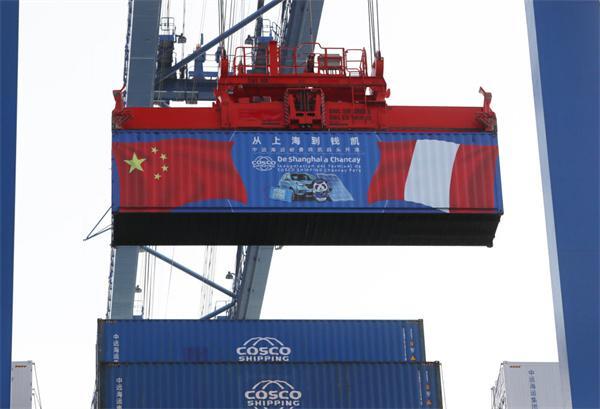 2024年11月14日,在秘鲁首都利马以北的钱凯港,岸边智能化设备吊装集装箱。新华社记者 李梦馨 摄