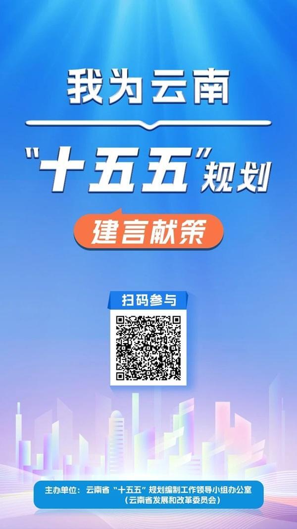 6月10日,云南省“十五五”规划编制工作领导小组办公室(云南省发展和改革委员会)发布《关于开展“我为云南‘十五五’规划建言献策”公开征集意见建议活动的公告》。