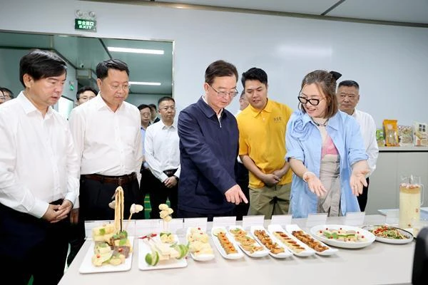 王宁还到建水瑞和农业开发公司调研,对其辐射带动蛋鸡养殖户统一种苗、标准、品牌的做法表示赞许,勉励企业坚持标准化生产,守牢食品安全底线,完善联农带农机制。在石屏豆腐产业园区,王宁深入企业调研豆制品生产研发、内销外贸等情况,要求持续做大“石屏豆腐”品牌和规模,不断延伸产业链价值链,培育良好产业生态,带动更多群众就业增收。