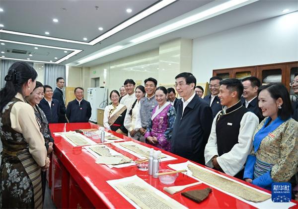 代表团到大昭寺看望慰问西藏宗教界爱国人士,赠送习近平总书记题词“共建中华民族共同体 书写美丽西藏新篇章”贺幛。王沪宁表示,藏传佛教具有爱国爱教、护国利民的优良传统,希望广大宗教界人士全面贯彻党的宗教工作基本方针,积极促进宗教和顺、社会和谐、民族和睦,坚决维护祖国统一和民族团结,引导信教群众坚定听党话、跟党走,投身社会主义现代化新西藏建设。