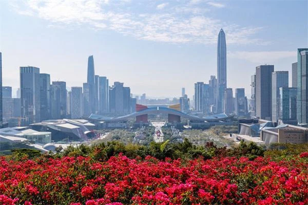 从深圳莲花山山顶俯瞰城市中轴线(2025年1月29日摄)。新华社记者 梁旭 摄