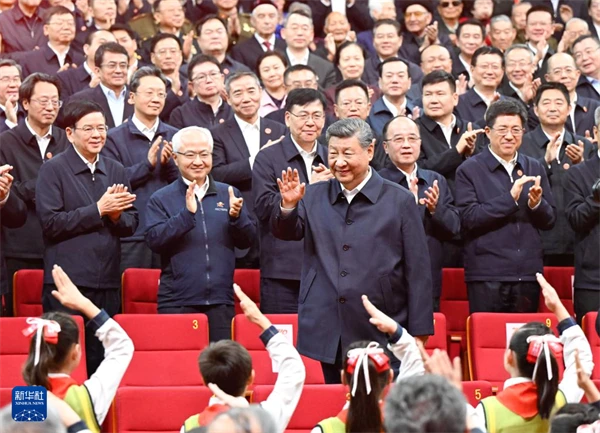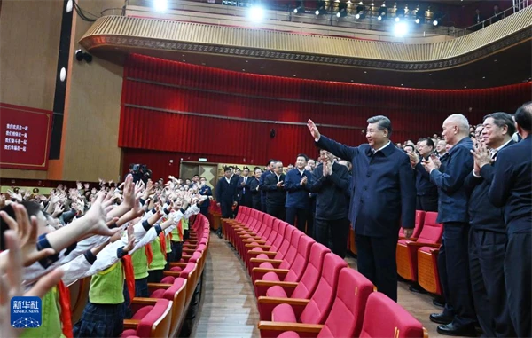 王沪宁、蔡奇、李干杰、何立峰、王小洪、雪克来提·扎克尔、谌贻琴、王东峰和刘振立,在新疆工作过的老同志,以及中央和国家机关有关部门负责同志、中央代表团全体成员一同观看演出。