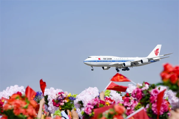 飞机沿着跑道滑行,飞向万里碧空。送别的人群,沉浸在幸福的喜悦中,久久不愿离去。