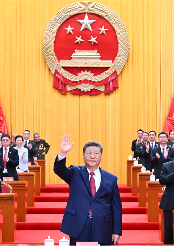 习近平总书记在中共中央政治局常委、全国政协主席、中央代表团团长王沪宁和中共中央政治局常委、中央办公厅主任蔡奇陪同下,健步走上主席台,向全场挥手致意。掌声雷动,经久不息。