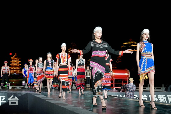 第三届临沧·百国华侨华人联谊会“温度临沧踏歌之夜”今年4月27日举办。图为活动期间举行的民族时装秀表演。白玲 摄
