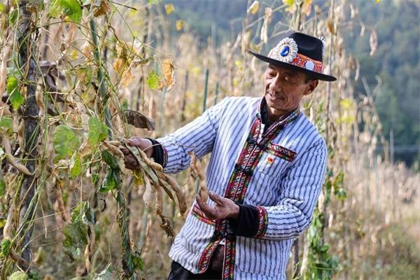 顺着机耕路走进坡度超过15度的白芸豆地,金星村委会主任赵林查看着豆子的收成:“原来化肥、杂草,都是村民一背篓一背篓背上来又背下去,省委统战部找来资金修起了这条路才让车能开上来。地里这些引杆也都是部里购置的,3年免费发放了60多万根、租给农户40多万根。”