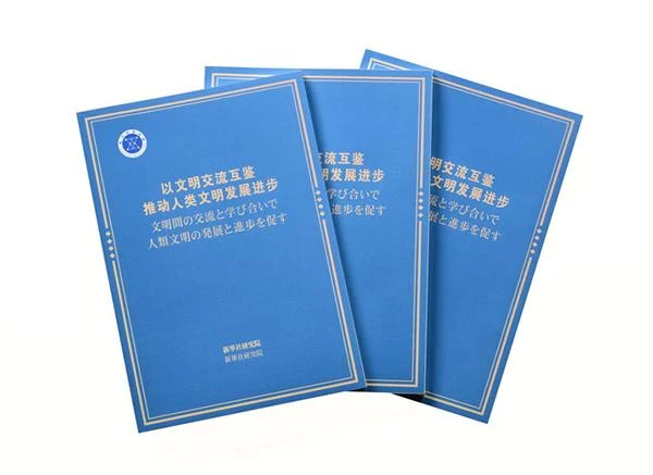2月18日,《以文明交流互鉴推动人类文明发展进步》智库报告发布。这是报告中、日文版。新华社记者 李贺 摄