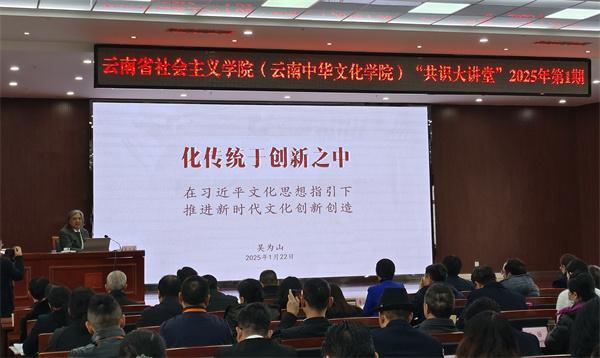 本站讯 2025年1月22日上午,云南省社会主义学院(云南中华文化学院)2025年第1期“共识大讲堂”开讲。本期“共识大讲堂”特别邀请民盟中央专职副主席、中国美术馆馆长吴为山教授作题为“化传统于创新之中——在习近平文化思想指引下推进新时代文化创新创造”的专题讲座。