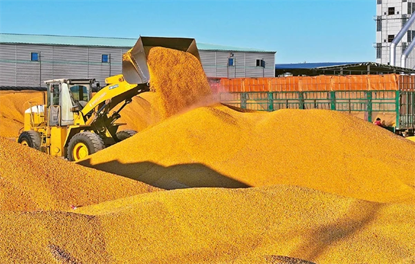 新征程上,要加强重点领域安全能力建设,夯实粮食、能源资源、产供链、战略通道等国家安全基础保障能力。国家统计局数据显示,2025年全国粮食产量14297.5亿斤,比上年增加167.5亿斤,全国粮食实现丰收。图为2025年10月14日,在北大荒集团北安分公司龙镇农场有限公司粮食烘干合作点,铲车正在转运待烘干的玉米(无人机照片)。钱泊羽 摄