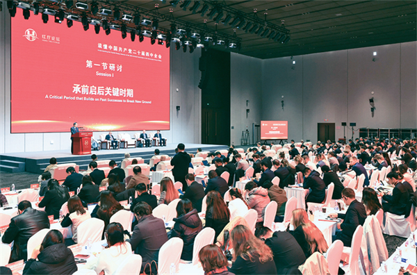 2025年11月7日,中共中央党史和文献研究院国家高端智库与新华社国家高端智库联合举办“红厅论坛:读懂中国共产党二十届四中全会”国际研讨会,共同发布《基本实现中国式现代化的关键阶段——“十五五”时期中国经济社会发展的战略擘画》智库报告。图为当日拍摄的红厅论坛研讨现场。 新华社记者 殷刚 摄